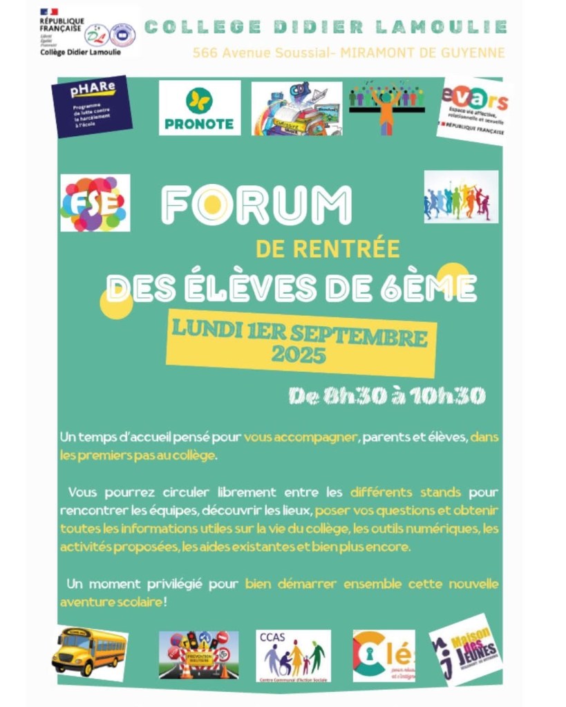 Pour la rentrée scolaire nous serons présents aux cotés des équipes pédagogiques du Collège Lamoulié et de l’école primaire Denise Baratz à Miramont